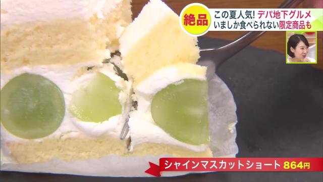 スイーツの有名店「べんべや」からは、8月15日から発売された「シャインマスカットショート(864円)」をご紹介。