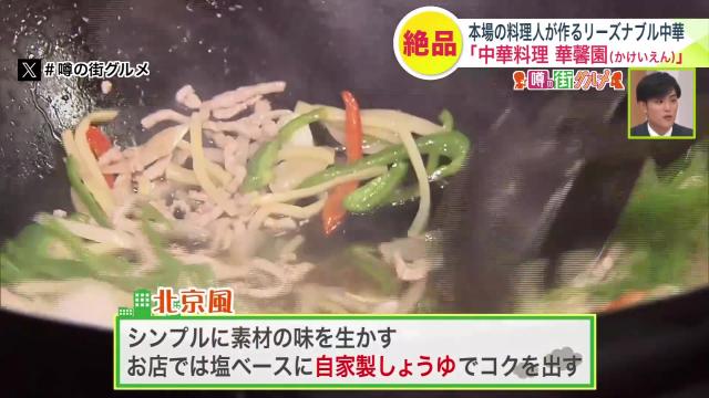 シンプルに素材の味を生かす北京風のチンジャオロースは、自家製しょうゆを加えてコクを出しているんだそうですよ。
