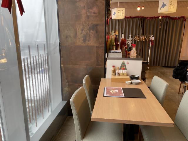 中に入ってみると、カウンターとテーブル席があり、奥には大きな窓が! 窓側のお席では、札幌の景色を見て楽しむことができます。