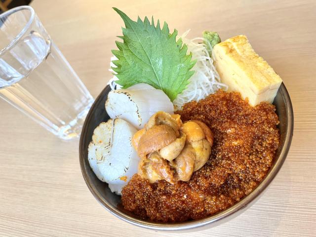 帆立は北海道噴火湾産、根室産、オホーツク沿岸産の3年ものを使用し、うには北海道沿岸で時期ごとに最良の産地を厳選してそこでとれたものを使用しているそう。