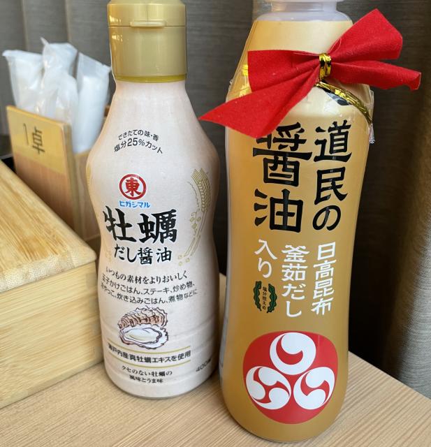 醤油にもこだわりがあり、「牡蠣だし醤油」と「日高昆布醤油」の2種類が用意されています。