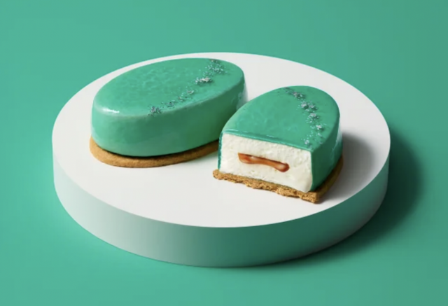 もう一つの代表作「ブルーポンド・キャラメルフロマージュ」は、透き通る青い層が印象的なムーススイーツ。“北海道ブルーをどうにか持ち帰りたい”という思いから生まれた一品で、写真映えする美しさも話題です。
