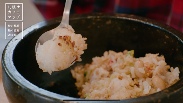 「石鍋だからお焦げができています。これが香ばしくておいしいんですよ」と、糸口アナウンサーもうれしそうに熱々を口へ運びます。