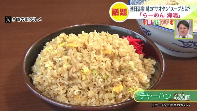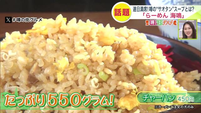 『らーめん海鳴』では、香ばしい炒飯がたっぷり550gで450円という価格で味わえるんです。