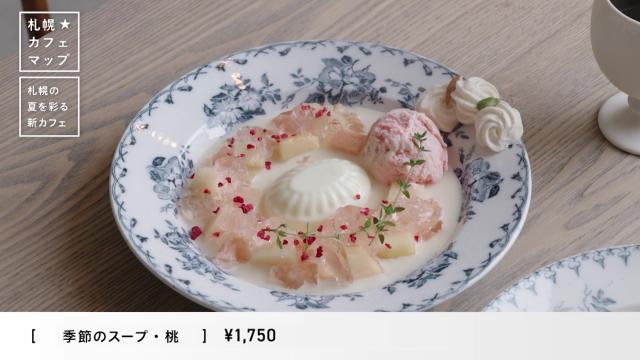 旬の食材を使った喫茶室限定メニューもあります。今の時期は、「季節のスープ・桃」(1750円)を提供しています。
