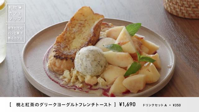 「桃と紅茶グリークヨーグルトフレンチトースト」(1690円、ドリンクセットA+350円)は、フレンチトースト、桃、紅茶のグリークヨーグルト、バニラアイス、レモンクランブル、フランボワーズソースで構成された夏限定メニュー。