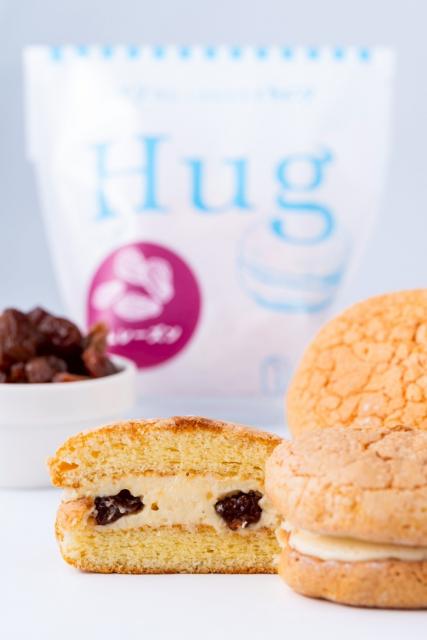 新作スイーツ『Hug』は、ふんわりしっとりした生地にさまざまなクリームや素材を包み込んだパフケーキサンド。
