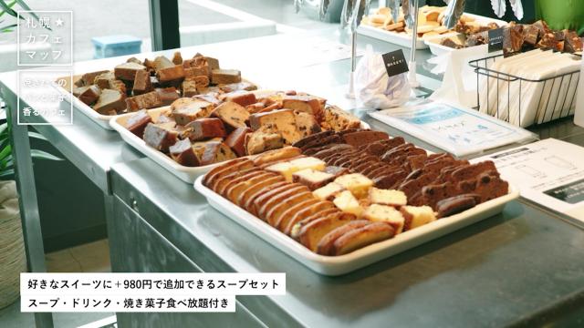 おすすめは「スープセット」。好きなスイーツにプラス980円で、スープ、ドリンク、焼き菓子の食べ放題が付くというお得なセットです。