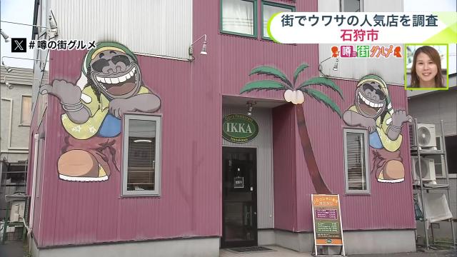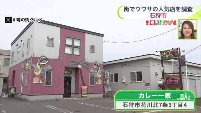 建物の両サイドのイラストが目を引く「カレー一家」は、石狩では数少ないスープカレーのお店。