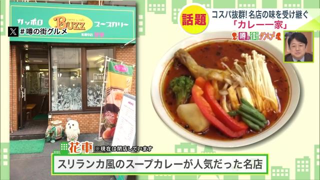 現在は閉店していますが、スリランカ風のトマト仕立てのスープカレーで人気のお店でした。