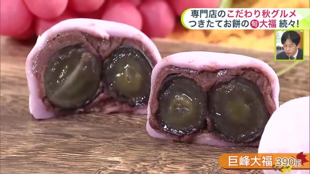 ほかにも、『巨峰大福 390円(税込)』など旬の味覚が楽しめる大福が味わえます。