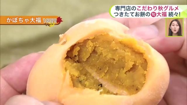 道産の“みやこかぼちゃ”を使用した『かぼちゃ大福 180円(税込)』も、この秋食べたい大福の1つ。