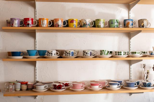 カウンターの後ろには、ムーミンのマグや、今ではなかなか入手できないレアな北欧雑貨が並んでいます。