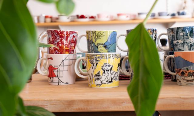 棚にはフィンランドの画家トーベ・ヤンソンが書いたムーミンのマグが。