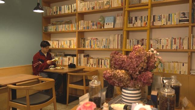 本屋店員だった経験をいかして、カフェには様々な本が陳列されています。
