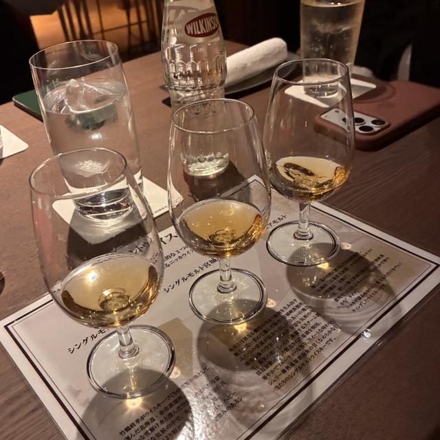 「シングルモルト余市」「シングルモルト宮城峡」「竹鶴ピュアモルト」を一度に味わえます。