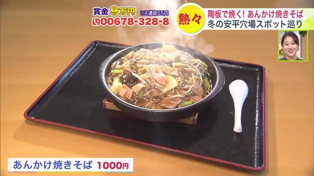 アツアツの陶板にのった「あんかけ焼きそば 1000円」は、餡がたっぷり。