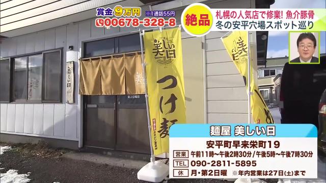 札幌中心部から約60キロ。高速道路を使うと約1時間の安平町は遠浅・早来・安平・追分の4つのエリアに分かれています。今回は、安平町・早来エリアの選りすぐりの穴場スポットを紹介。町内唯一のつけ麺専門店からシフォンケーキの専門店、温泉施設のお食事処まで、あびら観光協会の西嶋基さんに案内してもらいました。