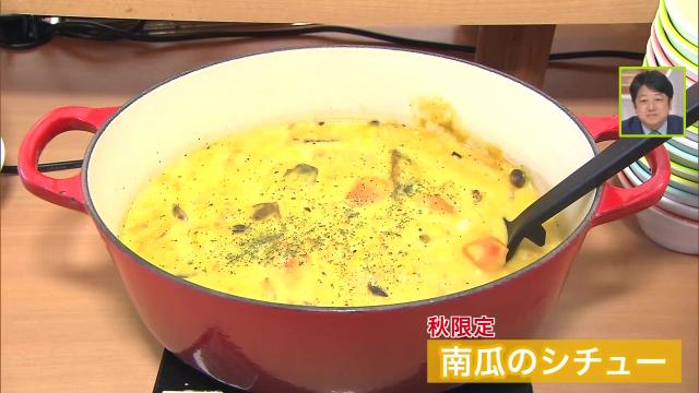 寒くなってきた秋には、秋限定のカボチャのシチューなど身体が暖まるメニューもおすすめ。